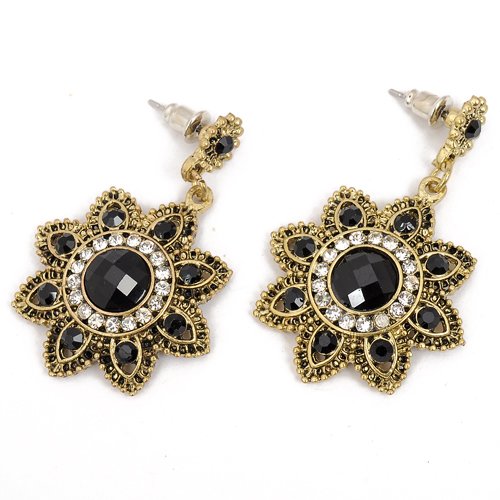 Here are some of the great features of Vintage Bronze Flower Round White Crystal Black Beads Dangle Hook Earrings